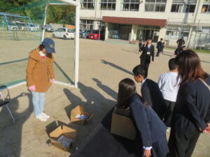 11月16日は飯室小で「学校へ行こう!IMURO祭」が行われ地域から飯室体協の「ペタンク体験」、いむろエルモの「ゴルフボールビンゴゲーム」が参加しました。